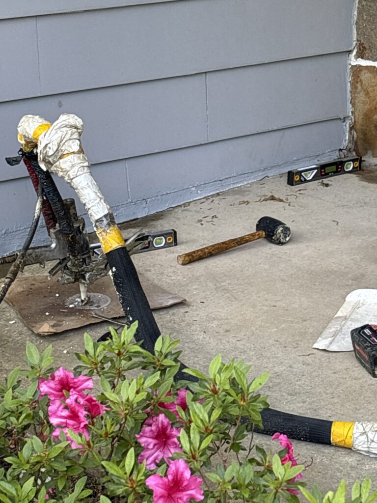If you’ve been searching for information on concrete lifting, you’ve come to the right place. The answer is YES—most concrete can be lifted back into place! We use a state-of-the-art two-part polyurethane foam system that’s as light as air yet as strong as concrete. Unlike traditional mudjacking methods that rely on heavy concrete slurry, our system mixes the lifting compound precisely as it’s pumped beneath your slab. The problem with cheaper slurry-based systems is the added weight—if the underlying soil is unstable, the extra load will only cause further settling, leading to costly tear-outs and re-pours. Our foam injection penetrates deep into voids, creating a stronger, lighter base. Even if the soil shifts again, the foam won’t add weight or pull your concrete down.